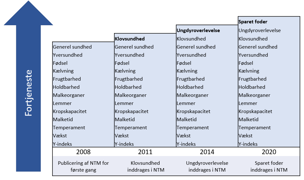 NTM er udviklet i et samarbejde mellem Finland, Sverige og Danmark og blev publiceret for første gang i 2008. Tidligere blev lignende total økonomiske indekser anvendt i alle tre lande. Henover årene er NTM blevet forbedret ved at inkludere nye egenskaber – senest klovsundhed og ungdyroverlevelse. Dette har øget den økonomiske værdi pr. indeksenhed.