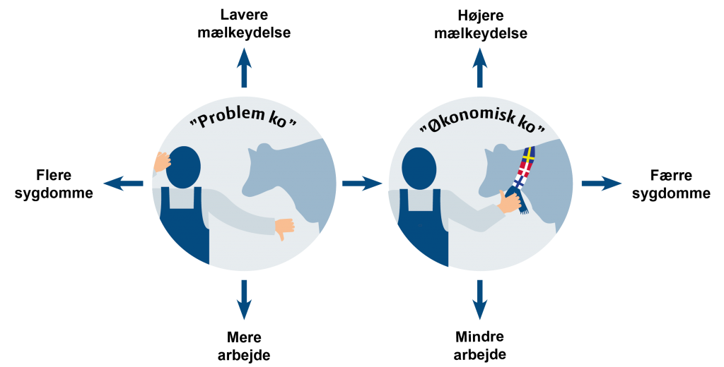 Den “økonomiske ko” er en ko der har en høj ydelse, god frugtbarhed, er modstandsdygtig overfor sygdomme og er nem at malke og håndtere. Altså en ko som bliver ved med at producere og giver et plus på bundlinjen år efter år uden at forårsage nogle problemer.