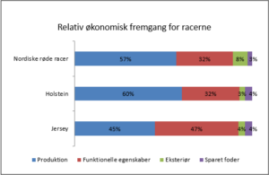 Vægten på de enkelte egenskaber samt deres indbyrdes avlsmæssige sammenhæng påvirker den økonomiske fremgang (Klik for at se nedenstående billede i stort format):