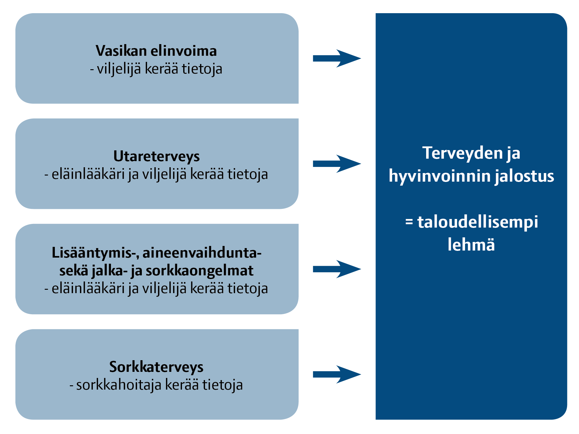 Monia terveysominaisuuksia on haastavaa mitata objektiivisesti, toisin kuin vaikka maitotuotosta tai rakennetta. Pohjoismaissa terveystietoa kerätään eläinlääkäreiden avulla, joita laki velvoittaa kirjaamaan ylös lypsykarjalle tehdyt hoidot. Tämän johdosta terveystietoa saadaan 90 prosentilta lehmistä, jotka kuuluvat tuotosseurantaan. Terveystietojen harmonisointiin ja keräykseen on panostettu paljon. Terveysominaisuuksien jalostusarvostelussa hyödynnetään vain niiden karjojen tietoja, joissa hoitotietojen keräys on luotettavaa ja sääntöjen mukaista.