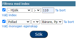 Det går nu också att filtrera sökningen av tjurar efter avelsindex och monogena egenskaper